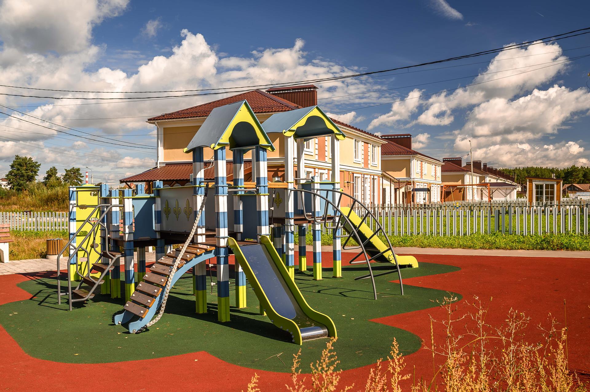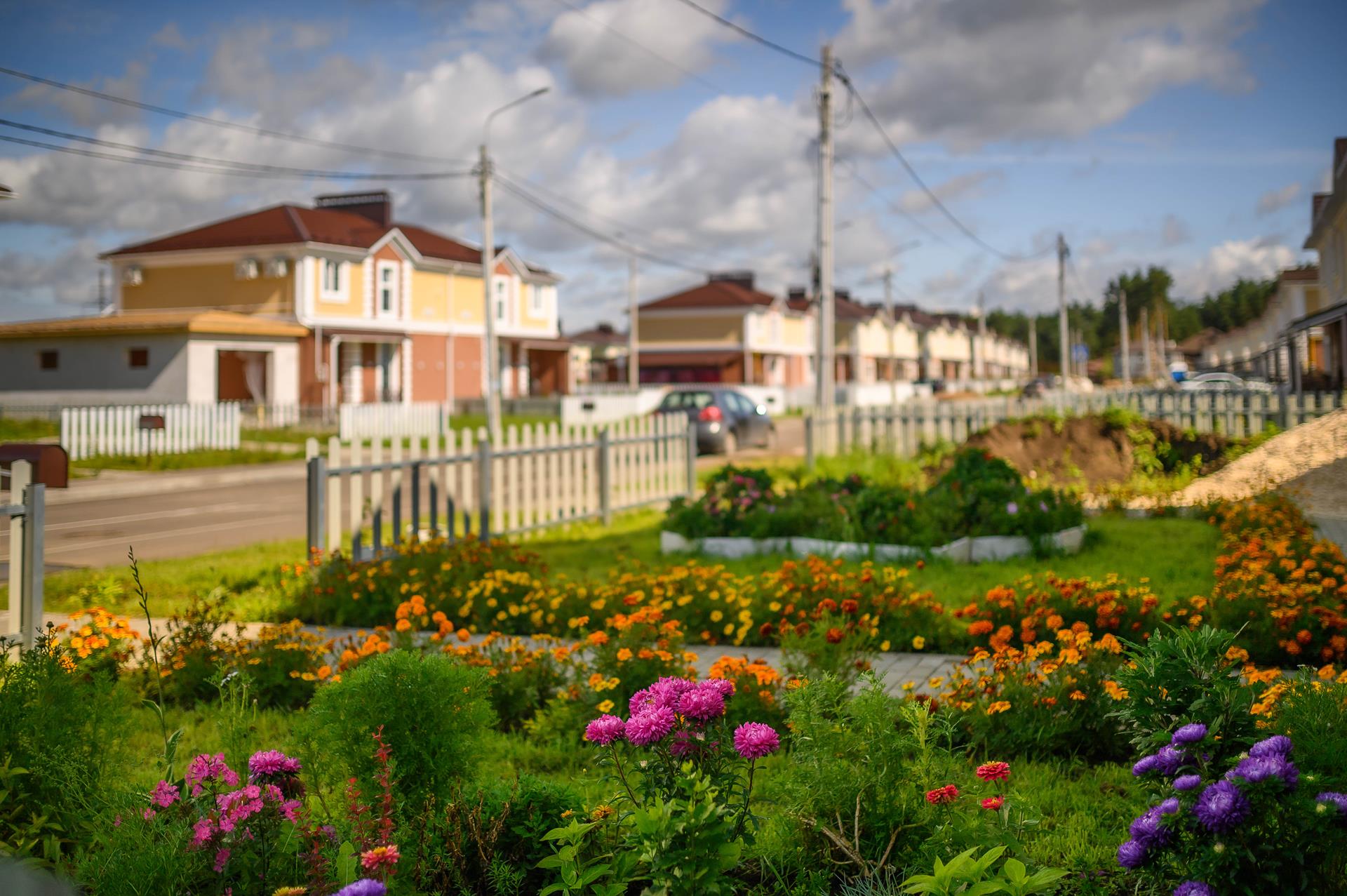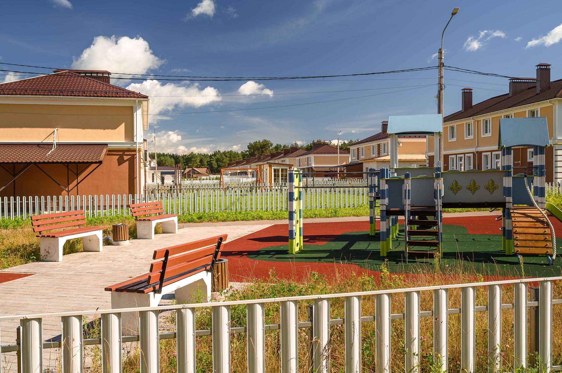 Квартал имеете единую архитектурную концепцию, новые асфальтированные дороги с тротуарами и уличным освещением и общую детскую площадку.