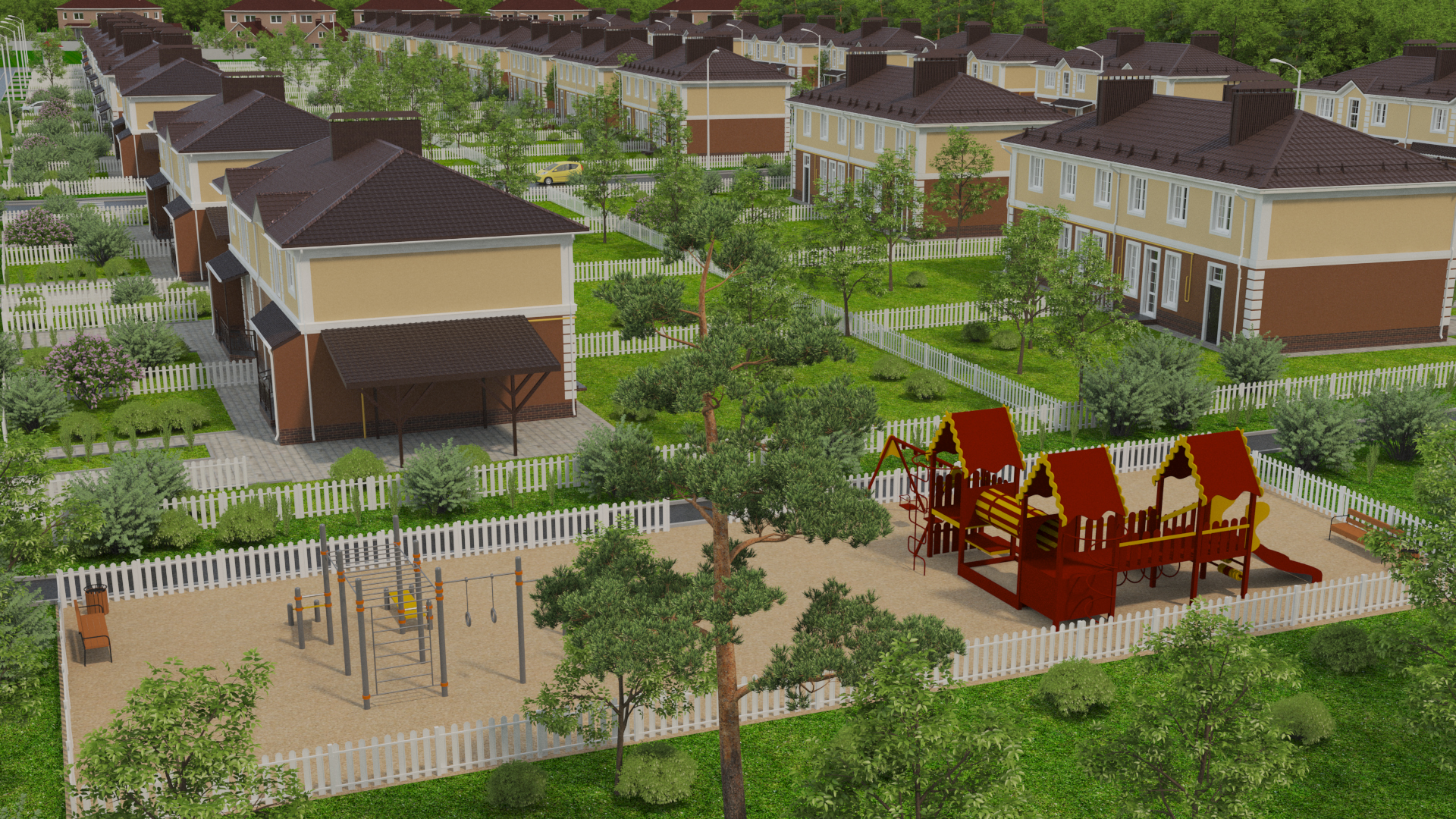 У каждой квартиры в доме есть собственный земельный участок, огороженный аккуратным заборчиком.