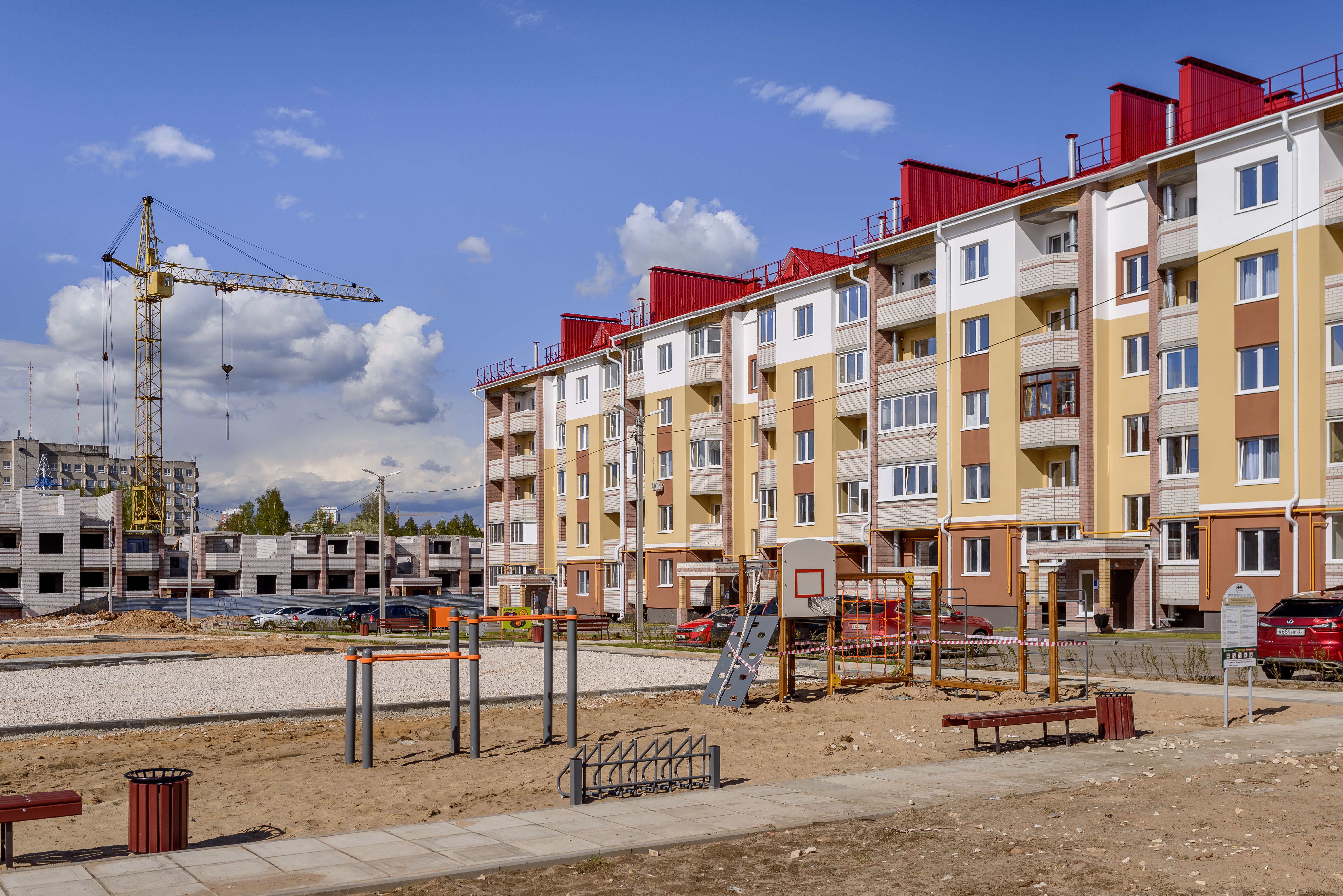 ЖК Восточный образует общую дворовую территорию с ЖК Парадный-1. Расположение домов по кругу создаёт дополнительную обособленность площадки, что делает двор более безопасным.