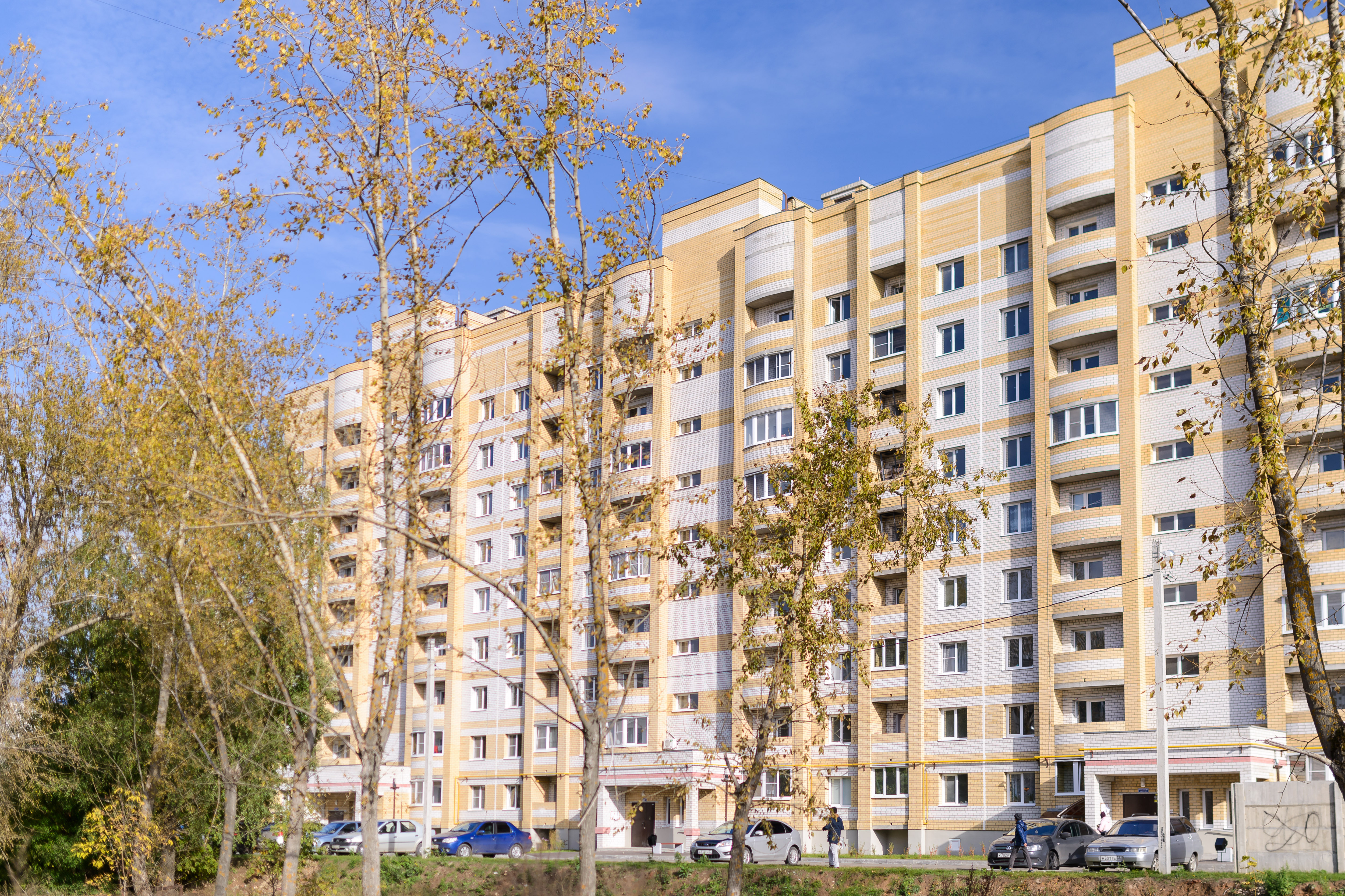 Новый 9-этажный кирпично-панельный дом с крышной газовой котельной на улице Туманова, 33.