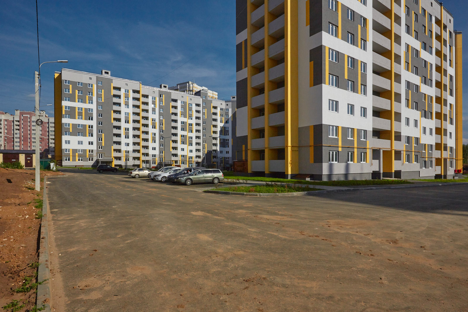 Парковочные места расположены по всему периметру этих 2 домов, а для удобства попадания в дом мы сделали все подъезды сквозными.