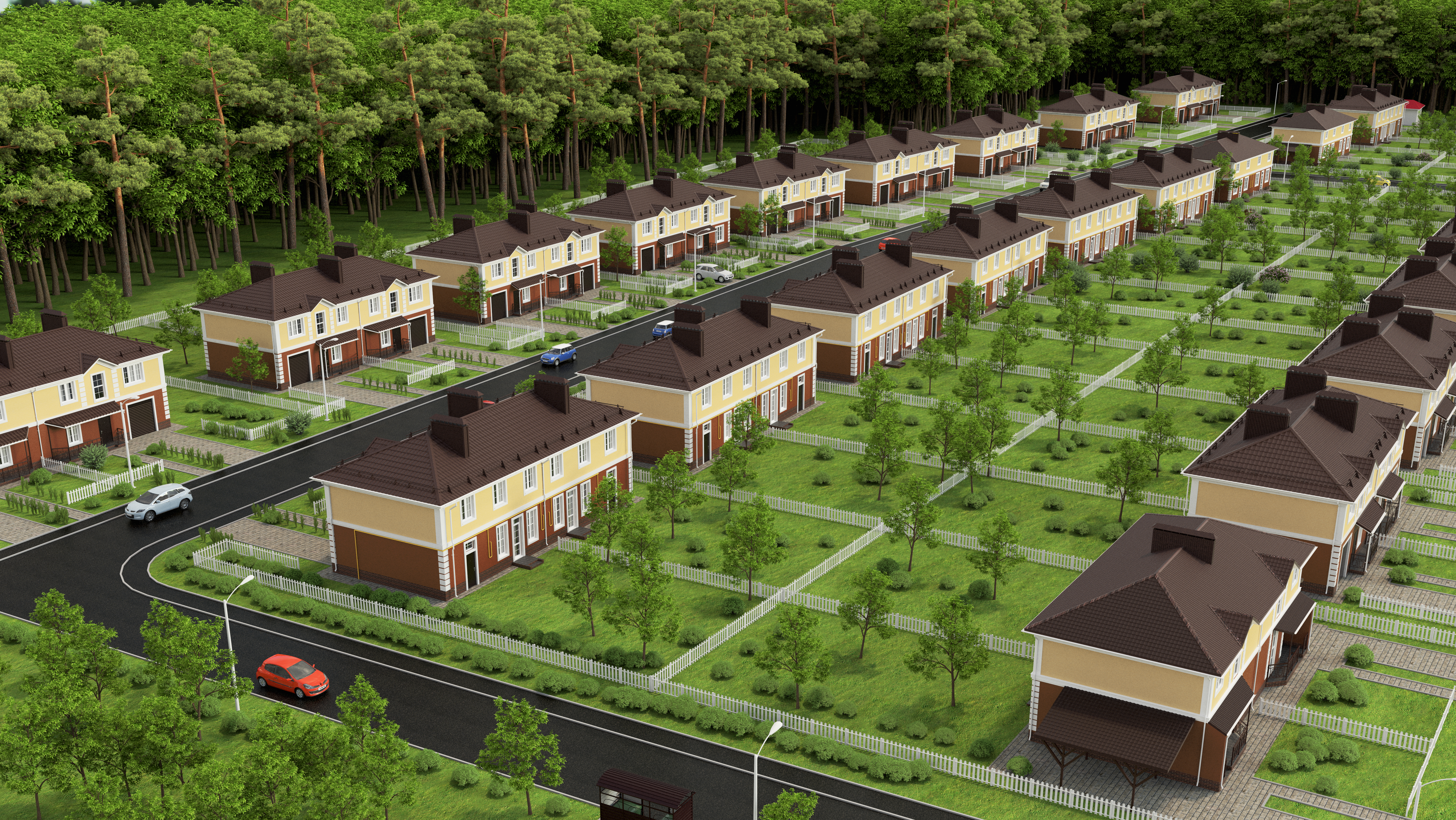 У каждой квартиры в доме есть собственный земельный участок, огороженный аккуратным заборчиком.
