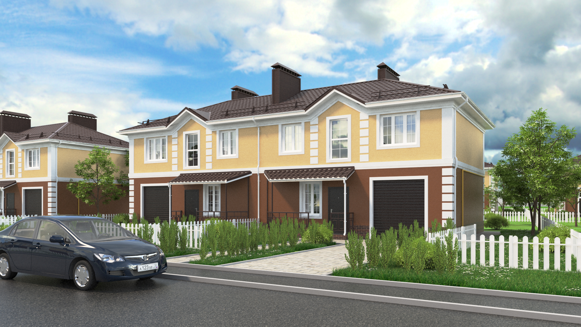 Дом №63 - это таунхаус с теплым гаражом, состоящий из 2 квартир площадью 138,3 кв.м. Дом входит в 1 очередь строительства, расположен на первой линии квартала на улице Ипподромной.