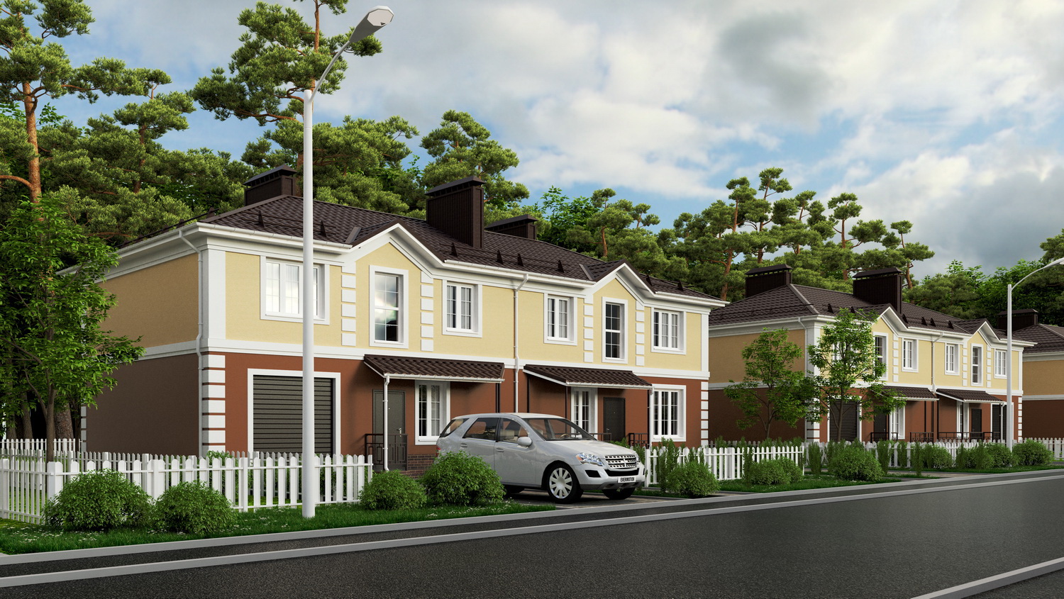 Дом №91 - это таунхаус, состоящий из 2 квартир площадью 166,0 кв.м. На первом этаже вместо теплого гаража в этом доме спроектирована дополнительная жилая комната, которую вы можете использовать и как гостевую, и как кабинет, и как спальню для членов семьи, которые не хотели бы подниматься на 2 этаж.
