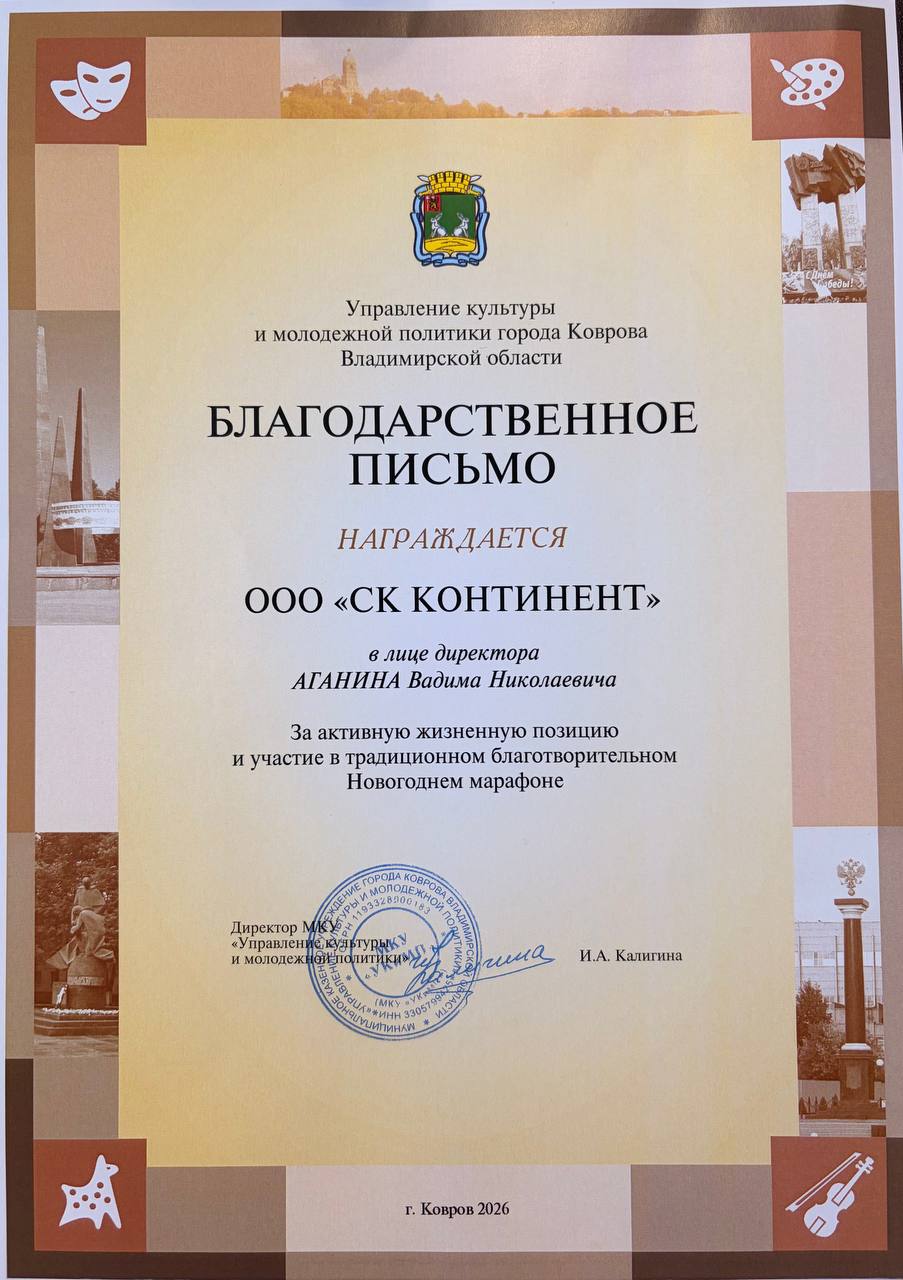 В мае 2020 года были подведены итоги самой масштабной в России премии в области жилищного строительства — Ежегодного градостроительного конкурса жилых комплексов-новостроек ТОП ЖК. лучшим жилым комплексом Владимирской области стал ковровский микрорайон Славный от СК «Континент».