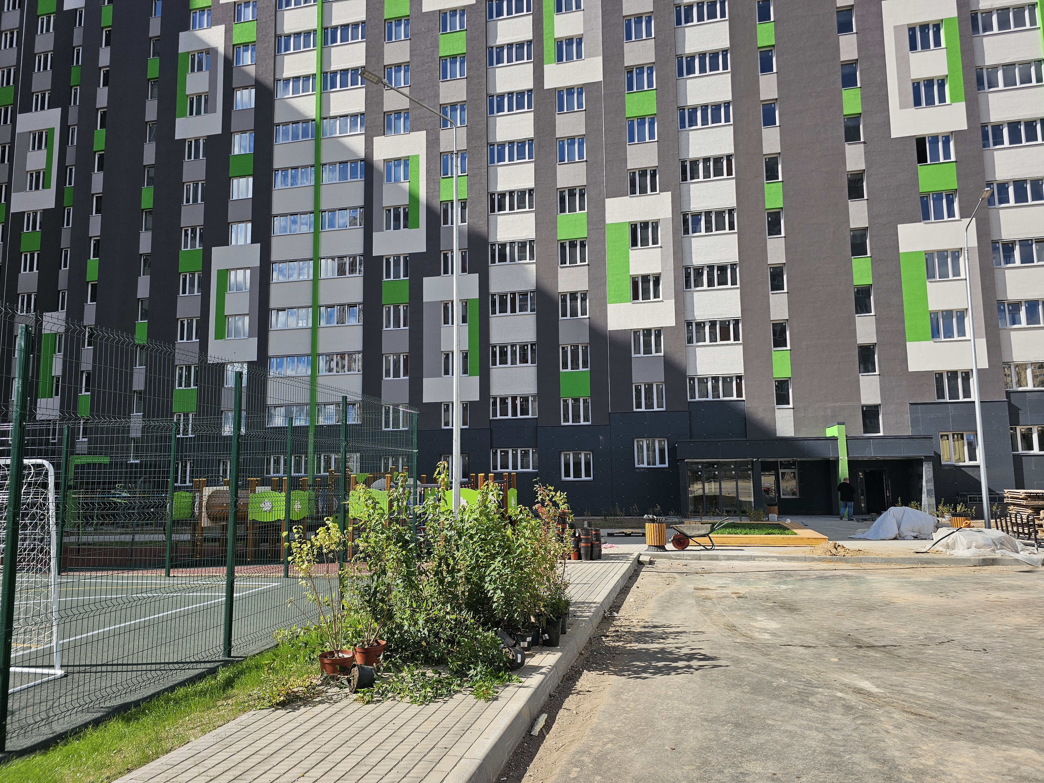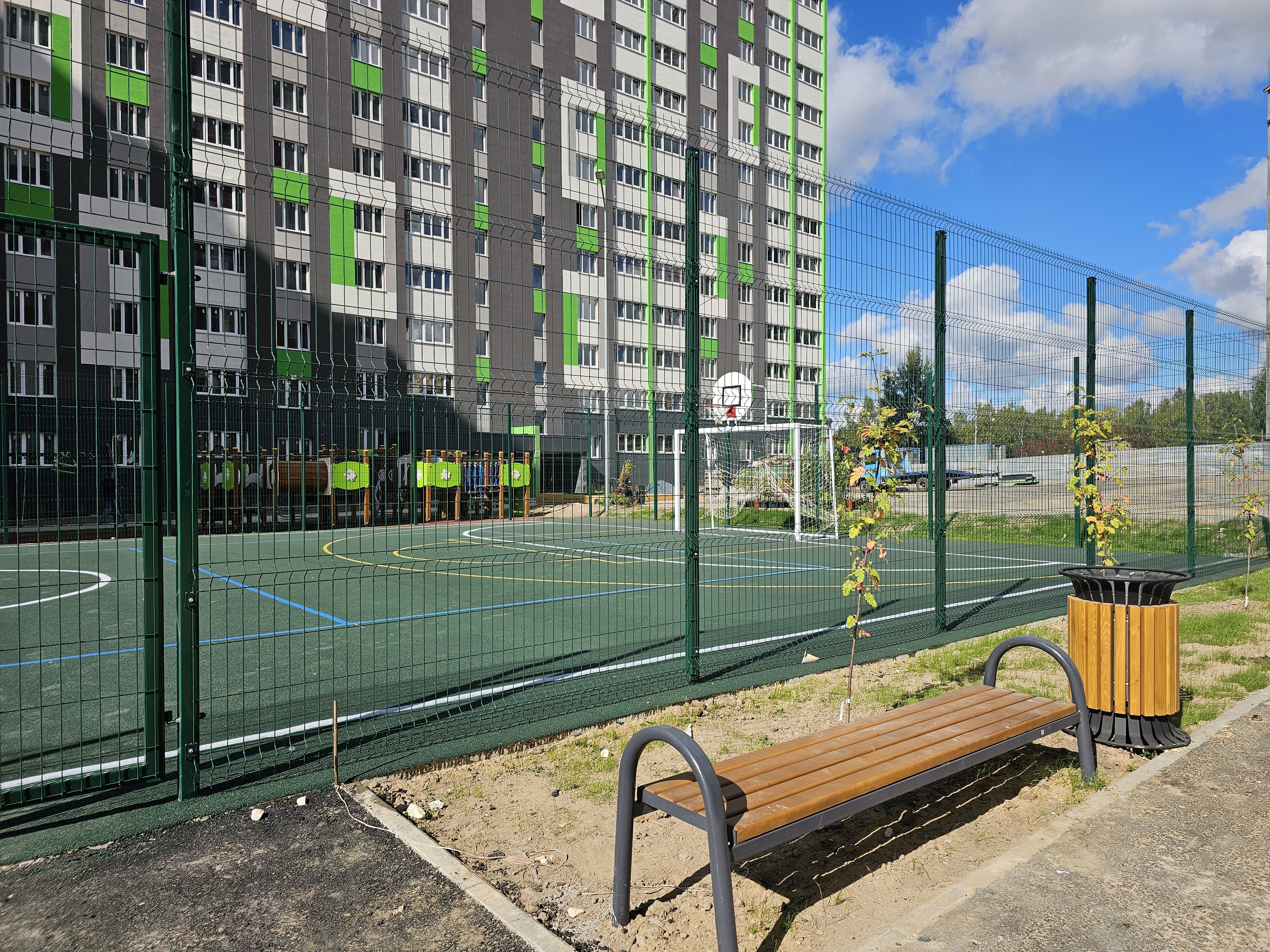 Особое внимание — комфорту и безопасности будущих жителей. Детские и спортивные площадки оснащены современным резиновым покрытием — мягким, износостойким и абсолютно безопасным. Всё оборудование установлено, зоны оформлены с заботой о каждом возрасте — от малышей до взрослых. Они уже ждут своих первых героев!